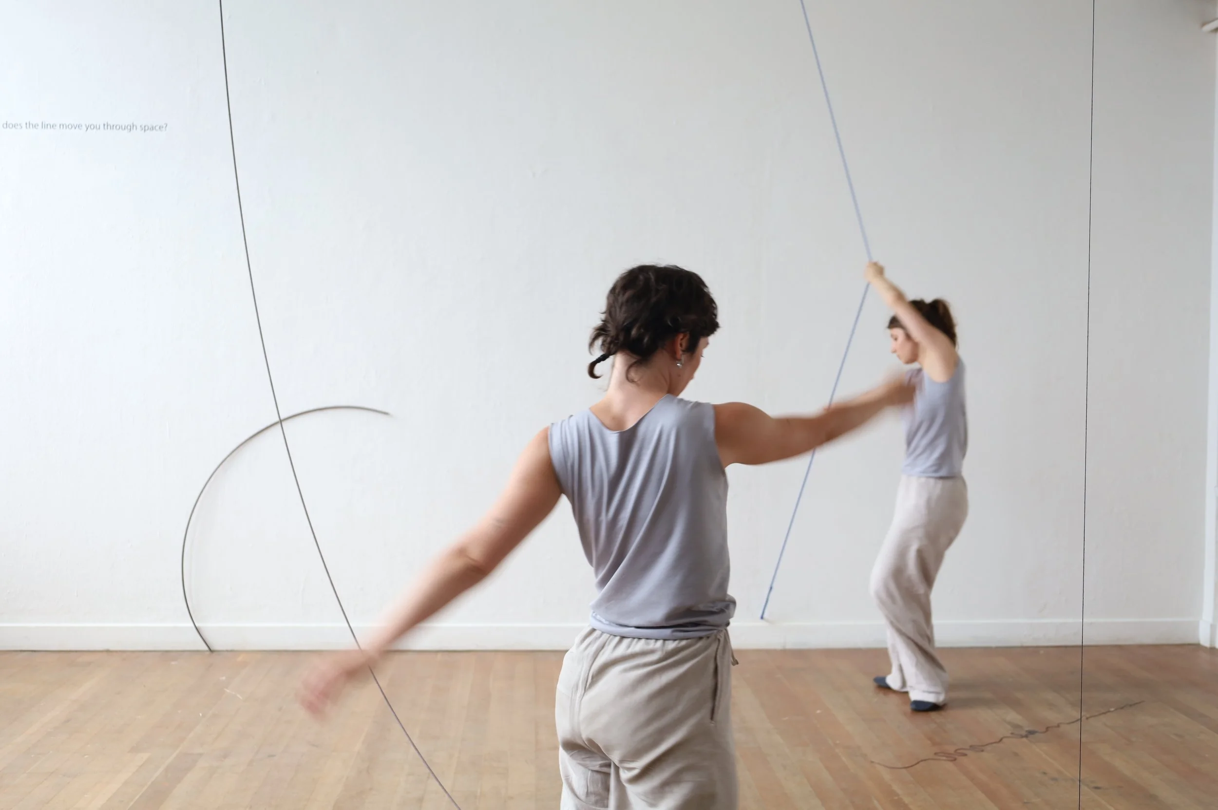In this work, the effect of lines on the spatial experience is explored through embodied research. Proposing alternative bodily movements in the spaces we inhabit by relating to, embodying and moving around the lines —exploring the spaces they facilitate. In a practice based on embodiment, we think through the entirety of our bodies. If the body is in the world and the world is experienced through the body, fusing them into a singular experience, it allows me to conclude that both space and the lines that are affecting it are thinking vessels.